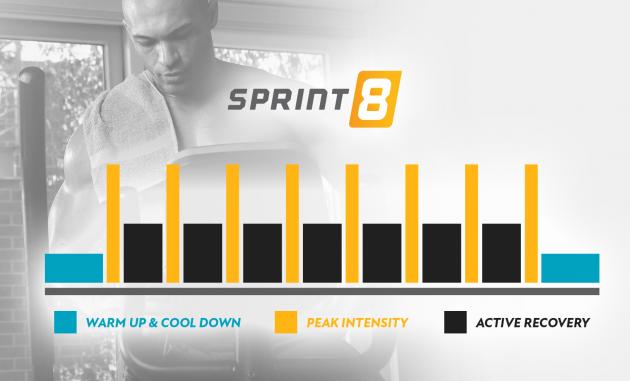 - Sprint 8 program - high intensity low impact interval training designed to burn fat and build muscle in 20 minute workouts